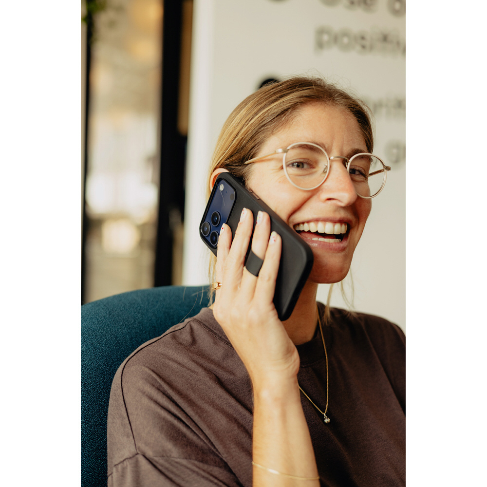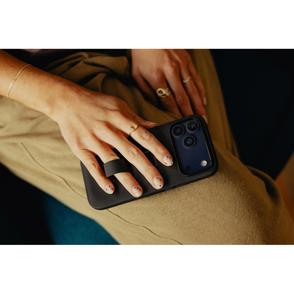 背面に独自のSlimLink(TM)システムを備え、関連アクセサリーを取り付け可能。フィンガーループ付き。フェアトレード認証取得製品。
