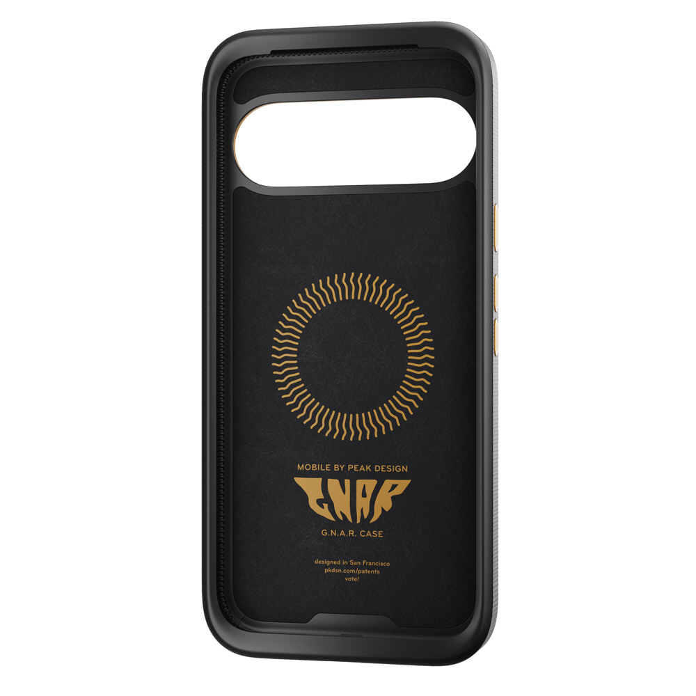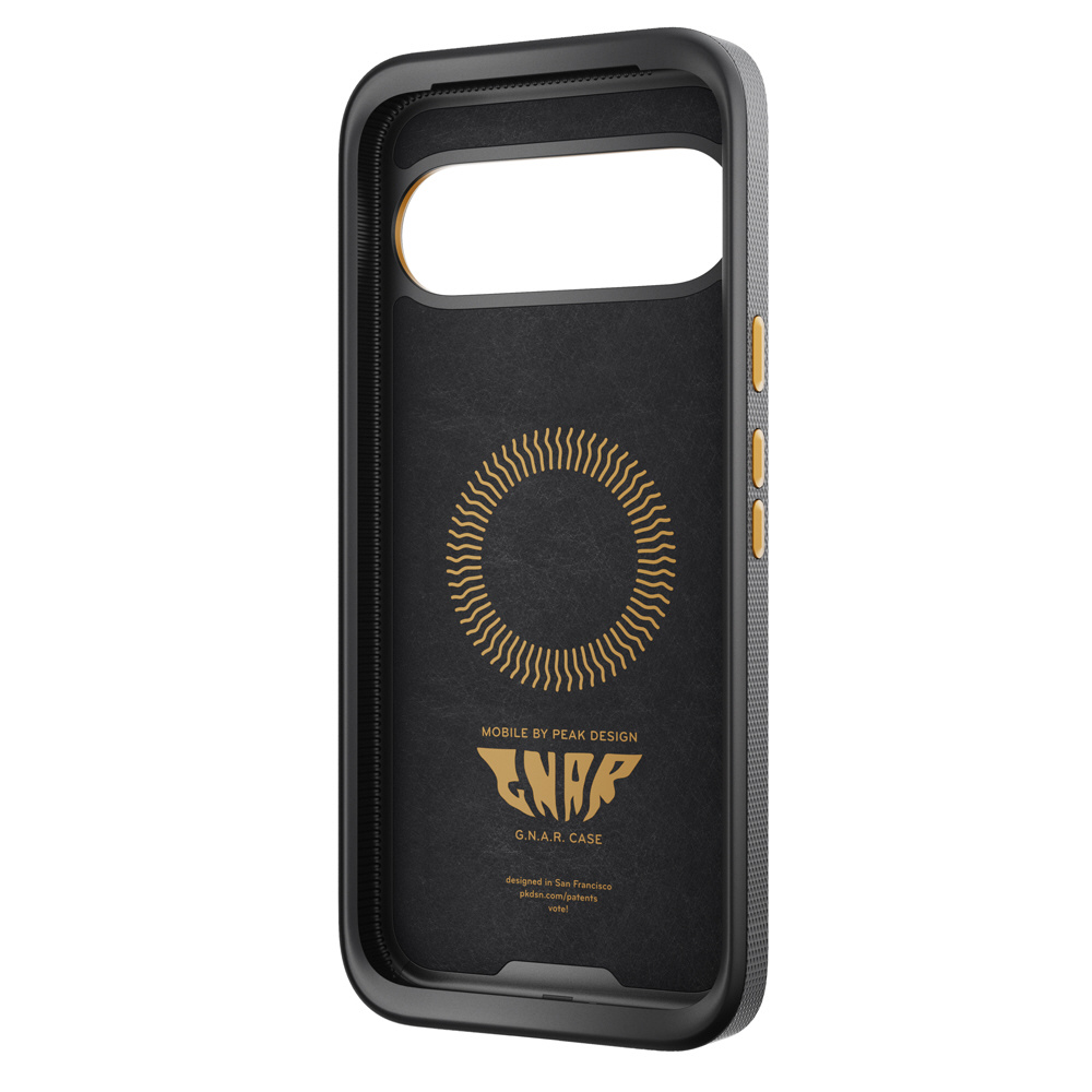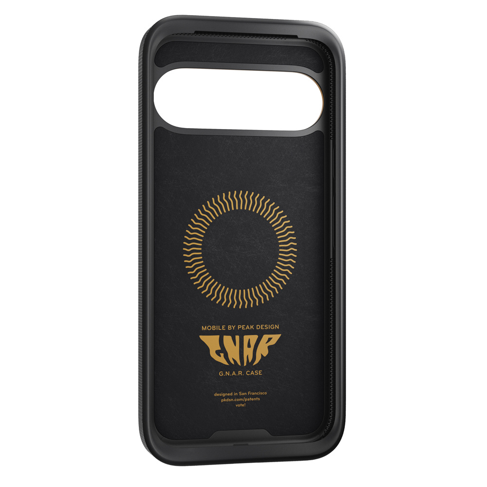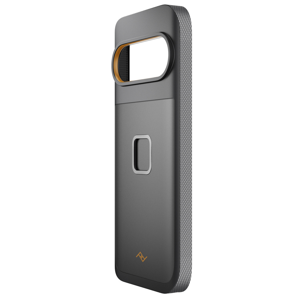 背面にピークデザイン独自のSlimLink(TM)システムを備え、関連アクセサリーを取り付けられます。本体は丈夫で軽量な100%リサイクルのポリカーボネート素材で、表面は傷や汚れに強い仕上がりです。