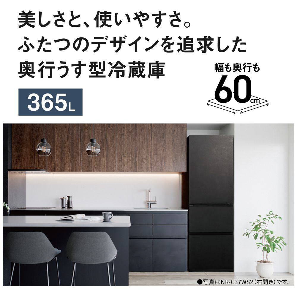 冷蔵庫 WSタイプ ストーンブラック NR-C37WS2L-K [60.0cm /365L /3ドア /左開きタイプ /2025年]