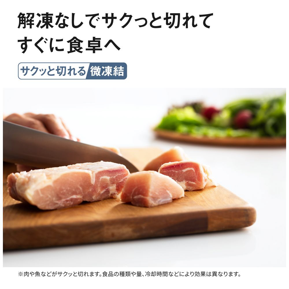 ・魚や肉類などがサクッと切れます。食品の種類や量、冷却時間などにより効果は異なります。