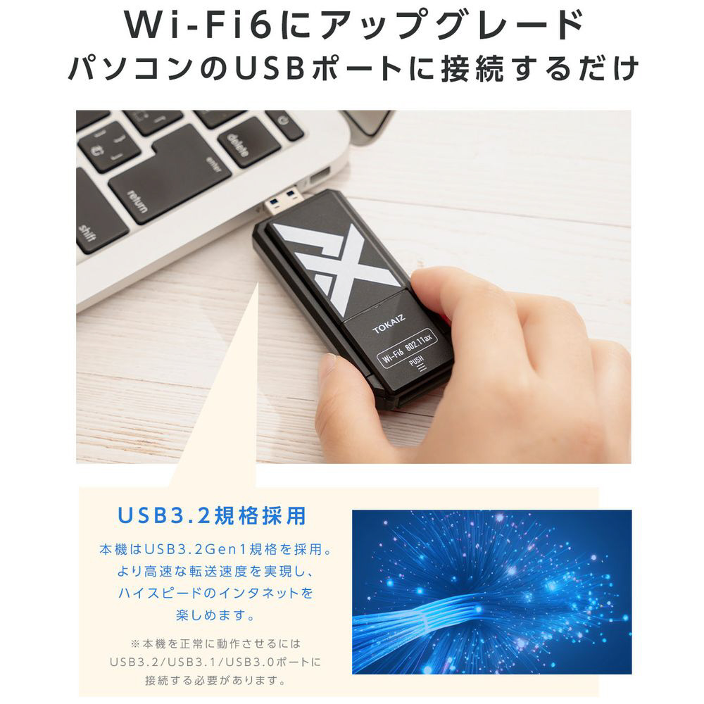 TWA-002 無線LAN子機 USB-A接続 574Mbps+1201Mbps (Windows11対応) [Wi-Fi 6(ax) /IPv6非対応]