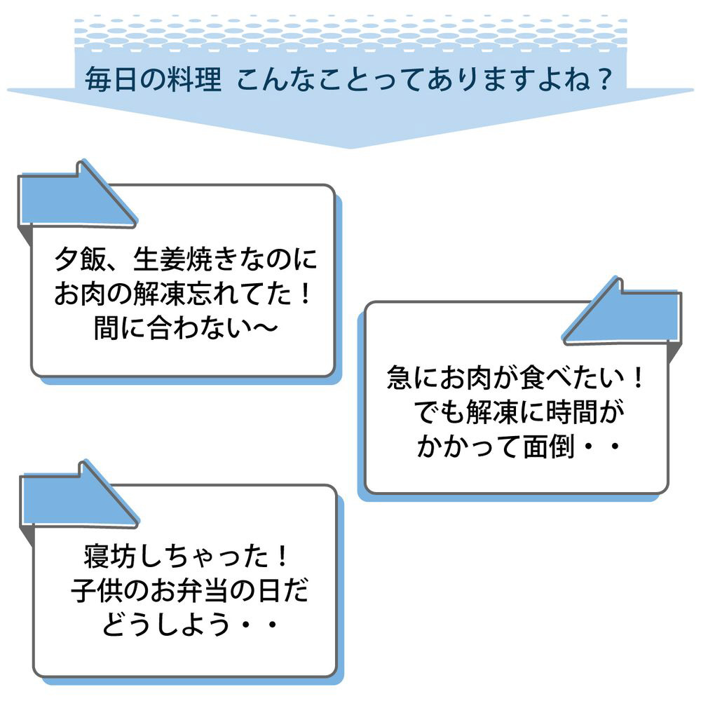 流水やレンジ解凍と違い、旨みや栄養を逃さずに解凍。お肉や魚介のおいしさをそのままキープします。