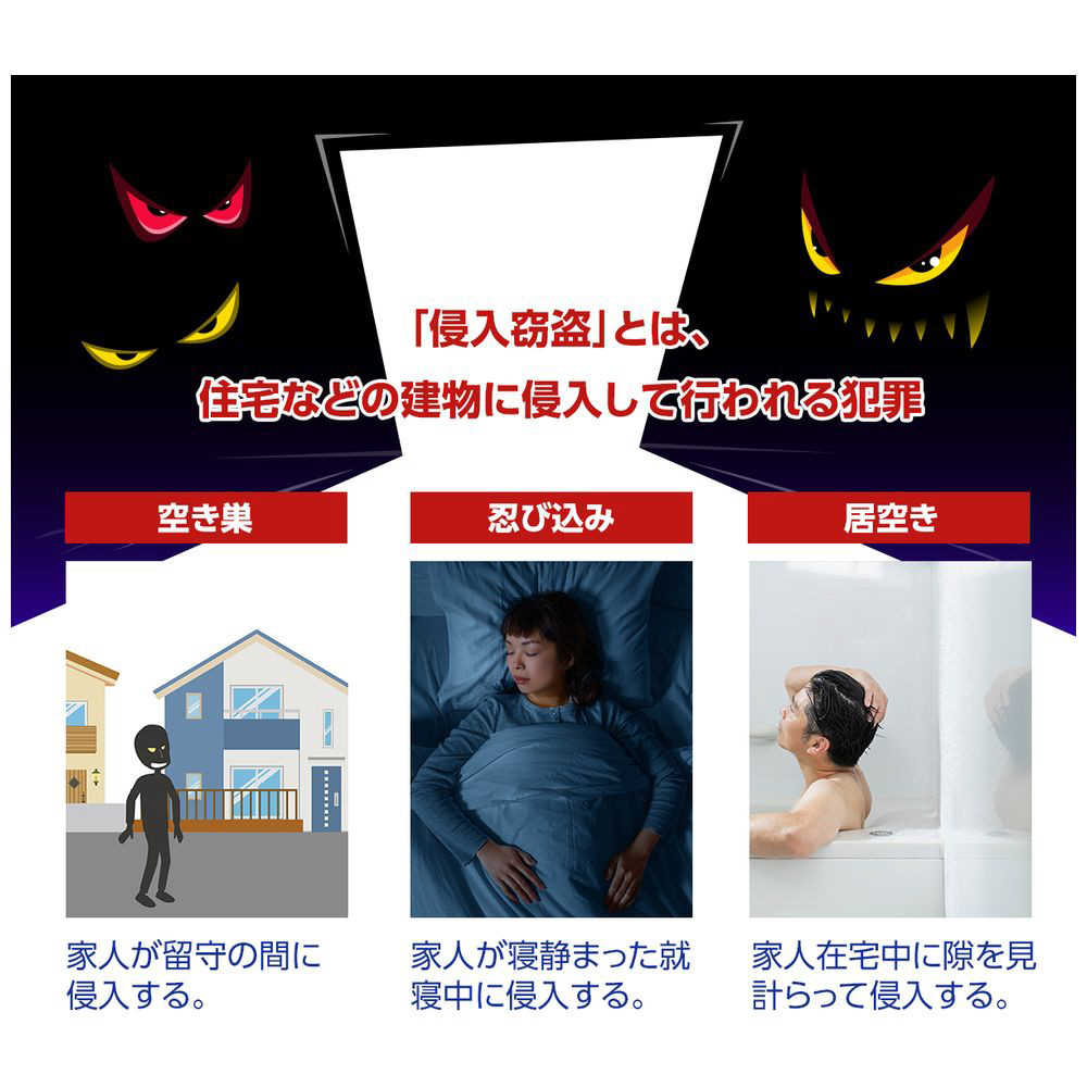 侵入者が「試し開け」で与えるわずかな衝撃も即座に感知。不審者を近づけさせません。