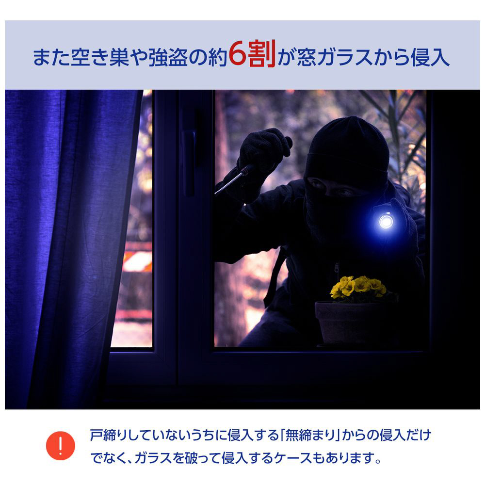 空き巣対策に最適!侵入者を撃退し、窓もドアも守る安心の防犯パートナー。開放検知と衝撃検知のダブル機能搭載、電池交換不要で1年間使える手軽さと爆音アラームで家族の安全を守ります。