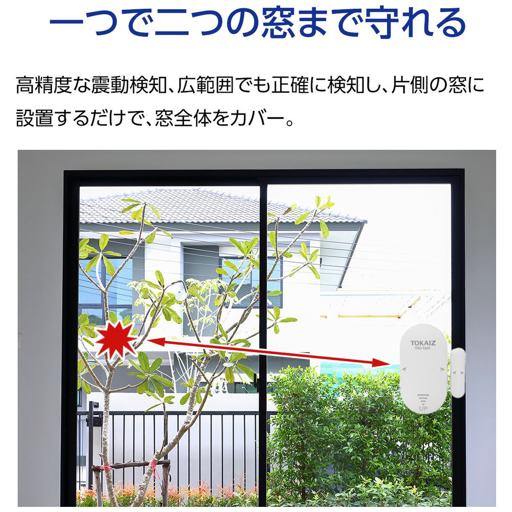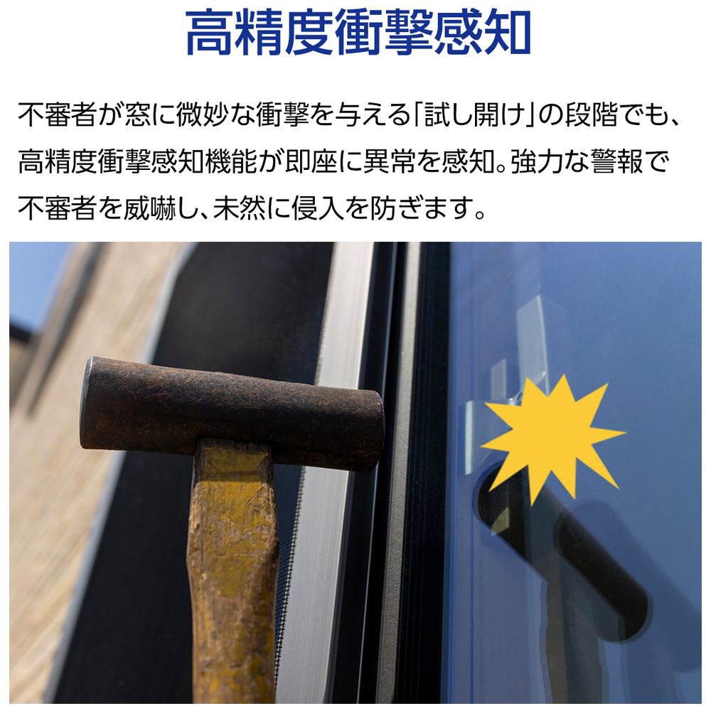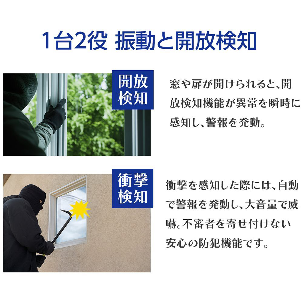 衝撃検知と開放検知を同時搭載。窓やドアをしっかり守り、万全のセキュリティ対策を実現します。