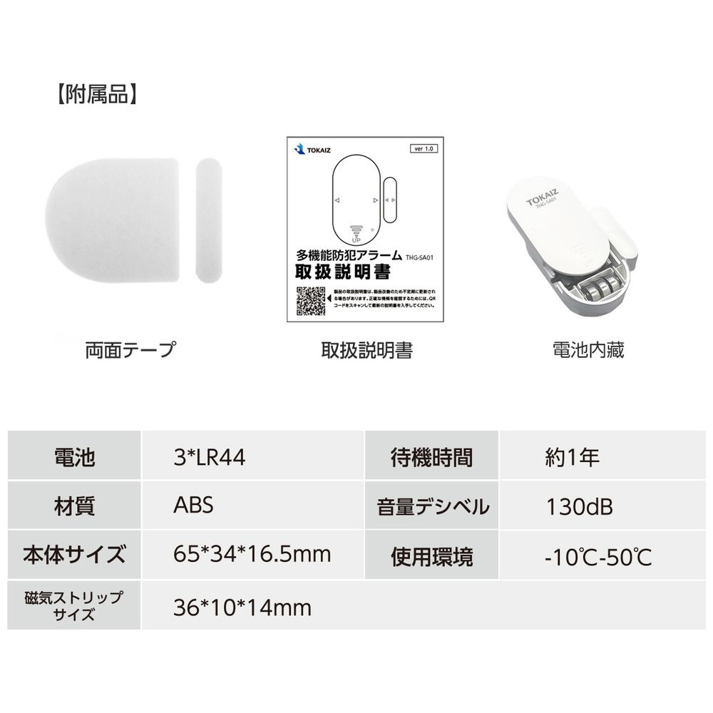 窓用防犯ブザー ホワイト THG-SA01