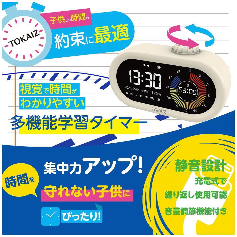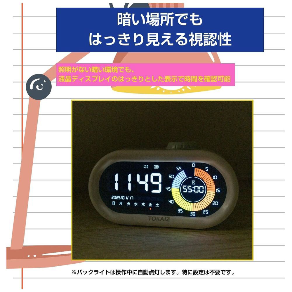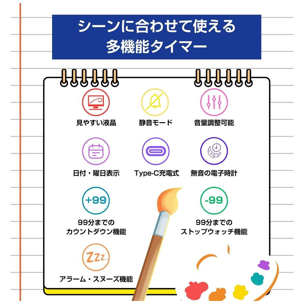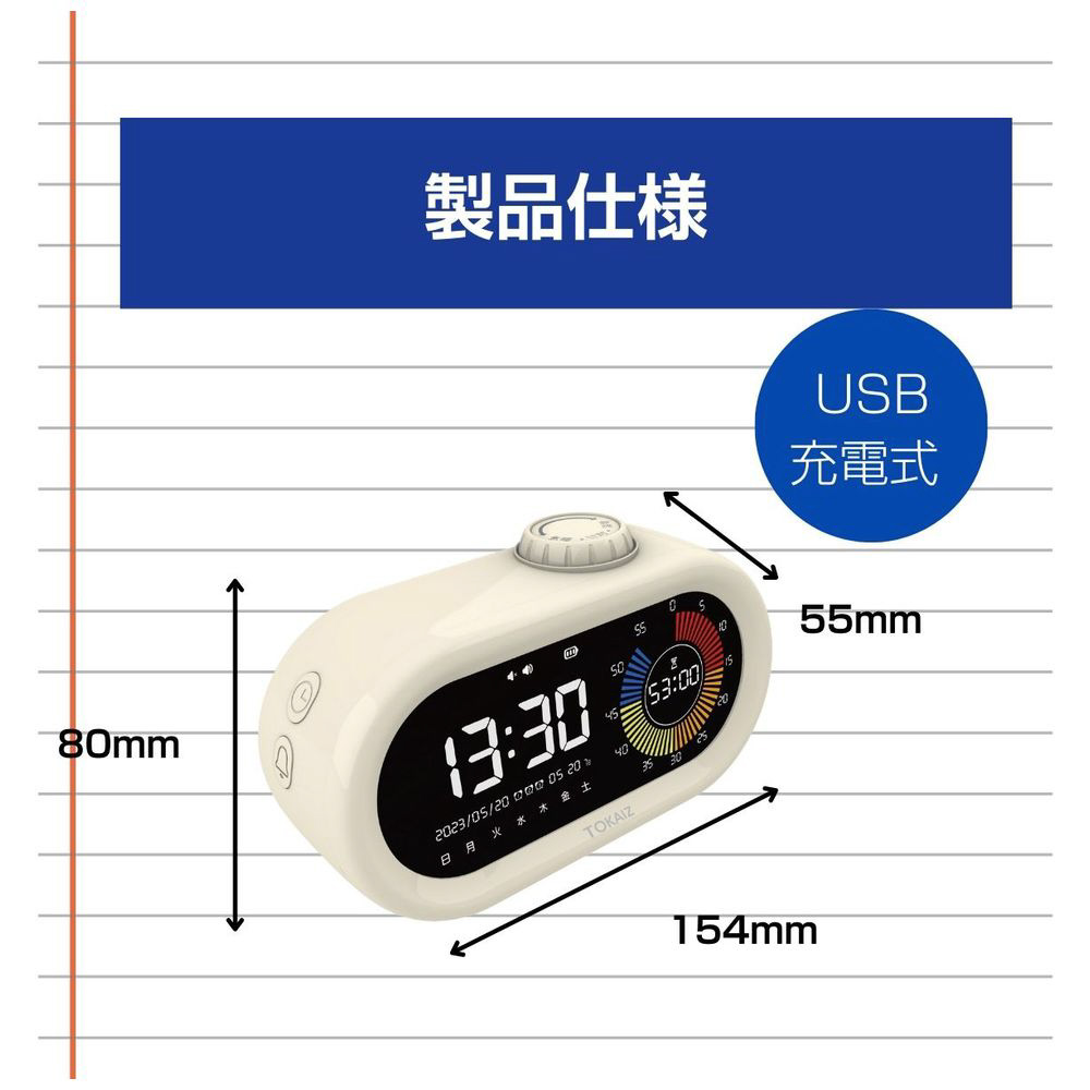 一目で分かる、管理しやすい、子どもの時間意識を育むカラフルなタイムマネージャー。勉強も生活リズムもサポートする目覚まし時計&勉強タイマー。Type-C充電式、日付・曜日表示、アラーム機能付きで小学生に最適。