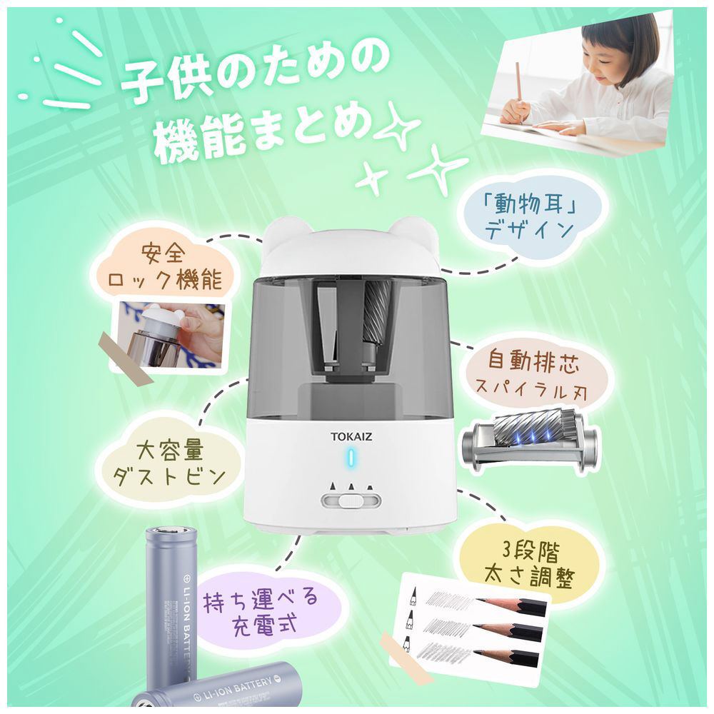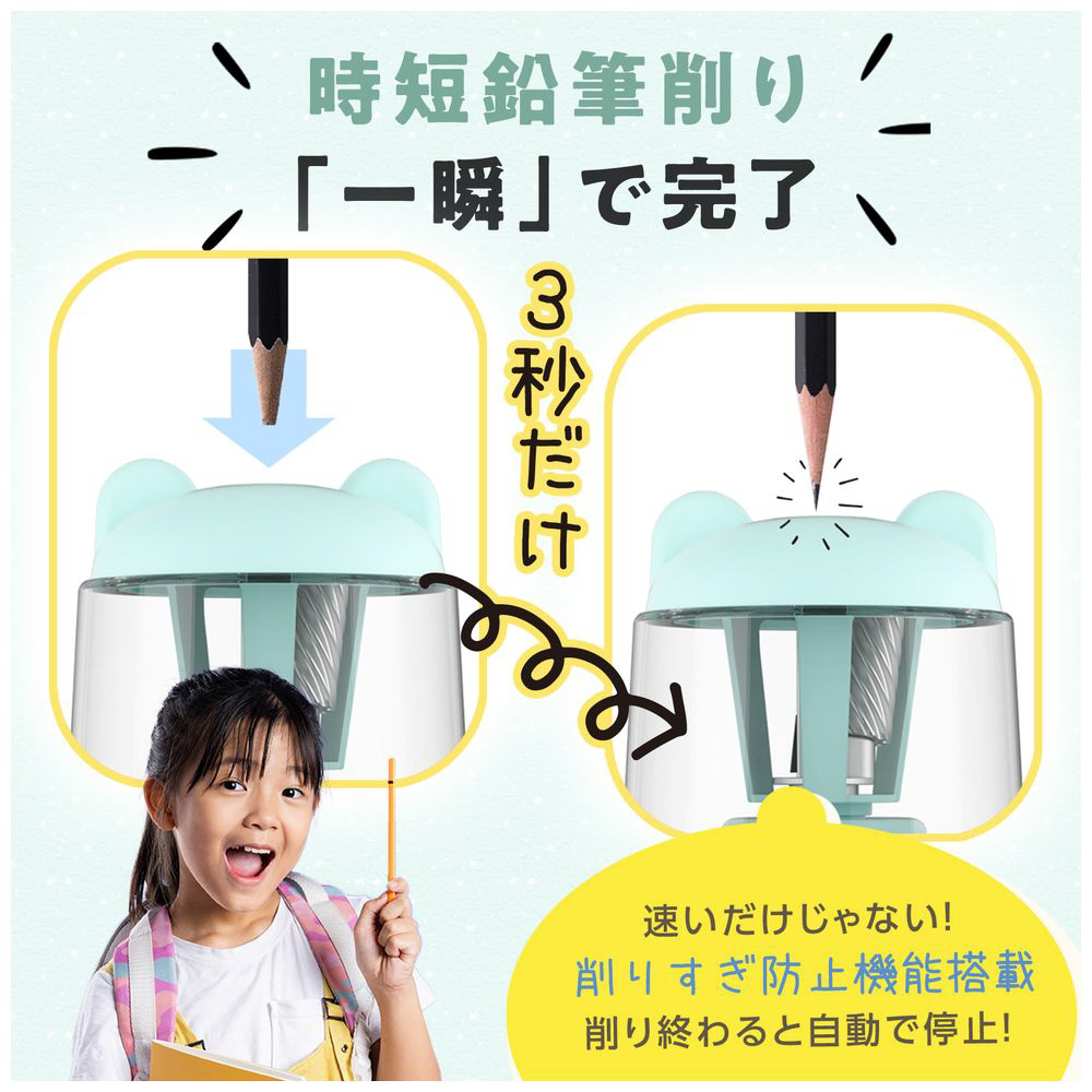 おしゃれで面白いアニマル風デザイン、安全かつスタイリッシュな時短設計スピード削り鉛筆削り機。家庭学習を楽しく彩り、入学祝いのプレゼントにもぴったりです。