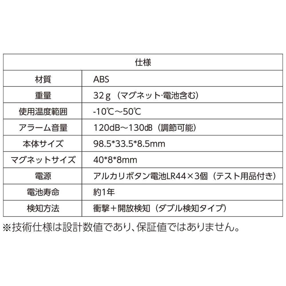 ・検知方法:衝撃+開放検知(ダブル検知タイプ)