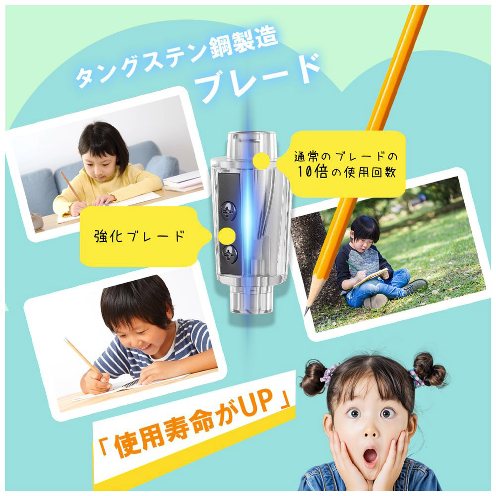 USB給電&電池対応の電動鉛筆削り。かわいいキャラクターデザインで子どもが大喜び!三角鉛筆も使えて芯先調整も可能。おしゃれで実用的だから、男の子も女の子も嬉しい。学校用や家庭学習、入学祝いのプレゼントにもぴったりです。