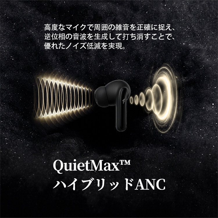 1MORE独自のQuietMax技術が周囲の雑音を効果的にカット。カフェや電車の中でも静寂に包まれ、音楽や作業に没頭できます。
