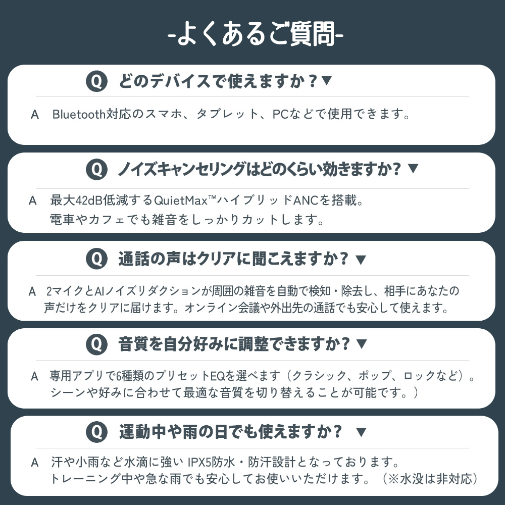 独自のQuietMaxアクティブノイズキャンセリングにより、通勤・通学・オンライン会議から音楽鑑賞・ゲームまで、