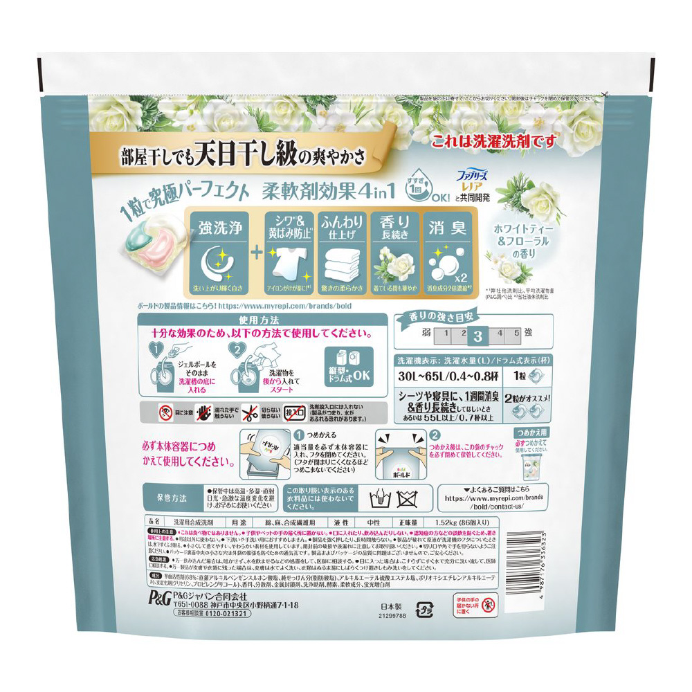ボールドジェルボール4D心弾けるホワイトティー&フローラルの香り 詰替テラジャンボサイズ 86個