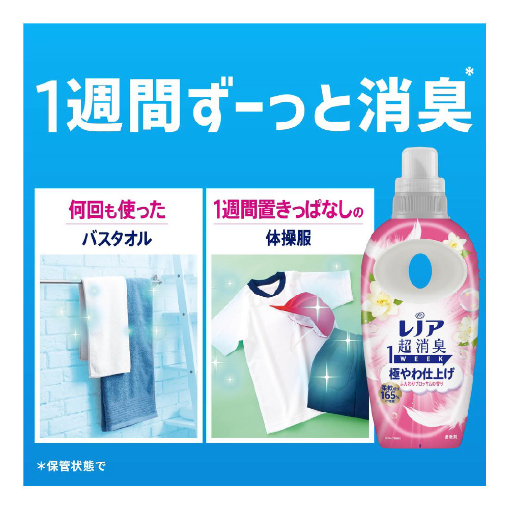 柔軟成分165%に増量*1 1週間ずーっと消臭*2 花粉ブロック*3 静電気ブロック部屋干しでも生乾き臭を防ぐ洗濯槽のニオイを防ぐ赤ちゃんの衣類もやわらかく *柔軟剤未使用と比較。すべてのニオイを0にするわけではありません *1 当社他レノア超消臭比 *2 保管状態で *3 静電気を防ぐ効果による 柔軟剤