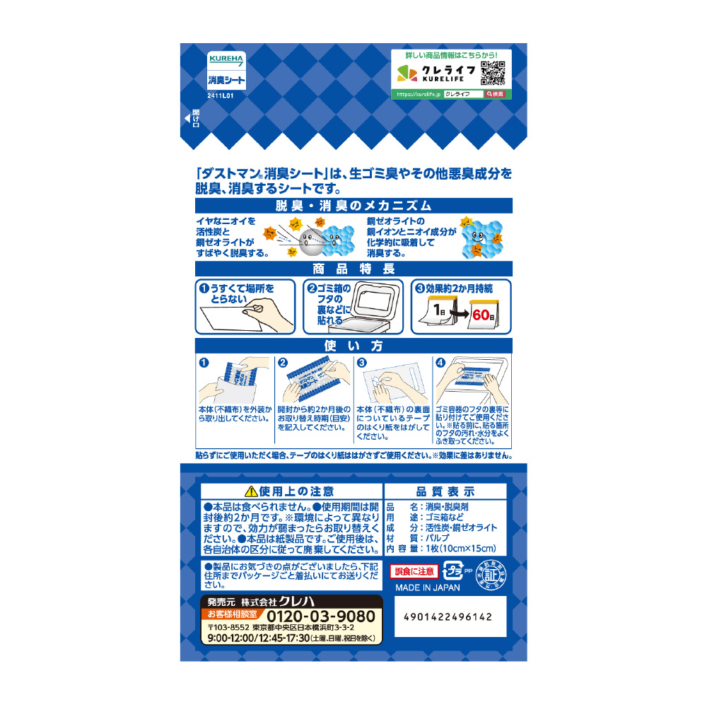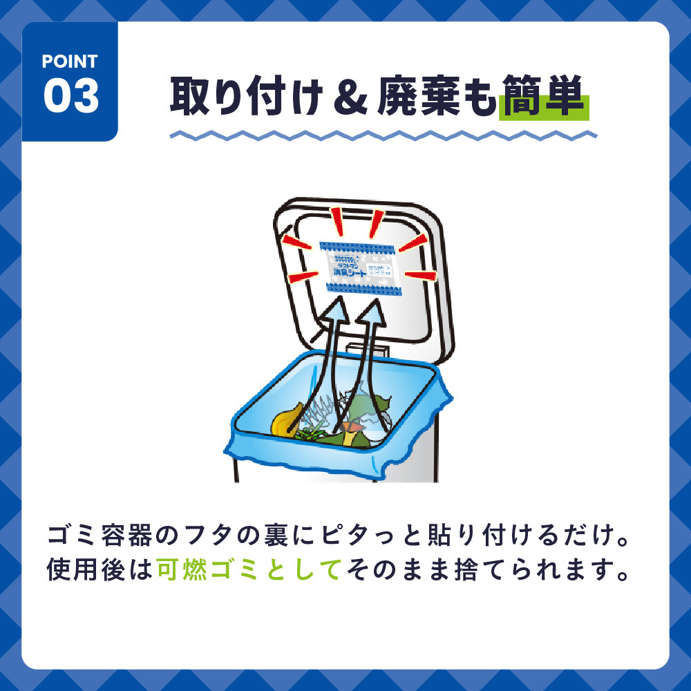 ●ゴミ容器のフタの裏に貼り付けるだけの脱臭+消臭シートです。