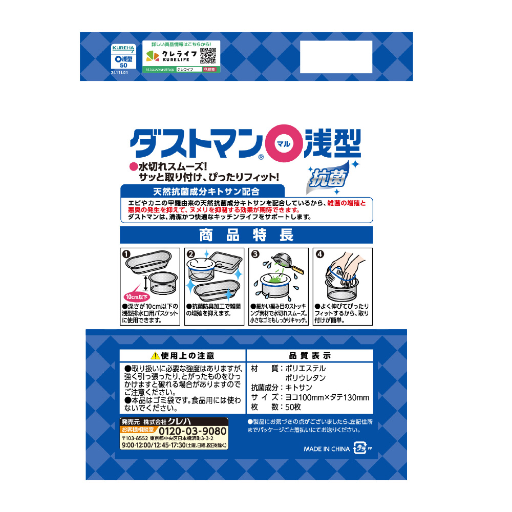 天然抗菌成分配合!浅型排水口用の水切りゴミ袋です。