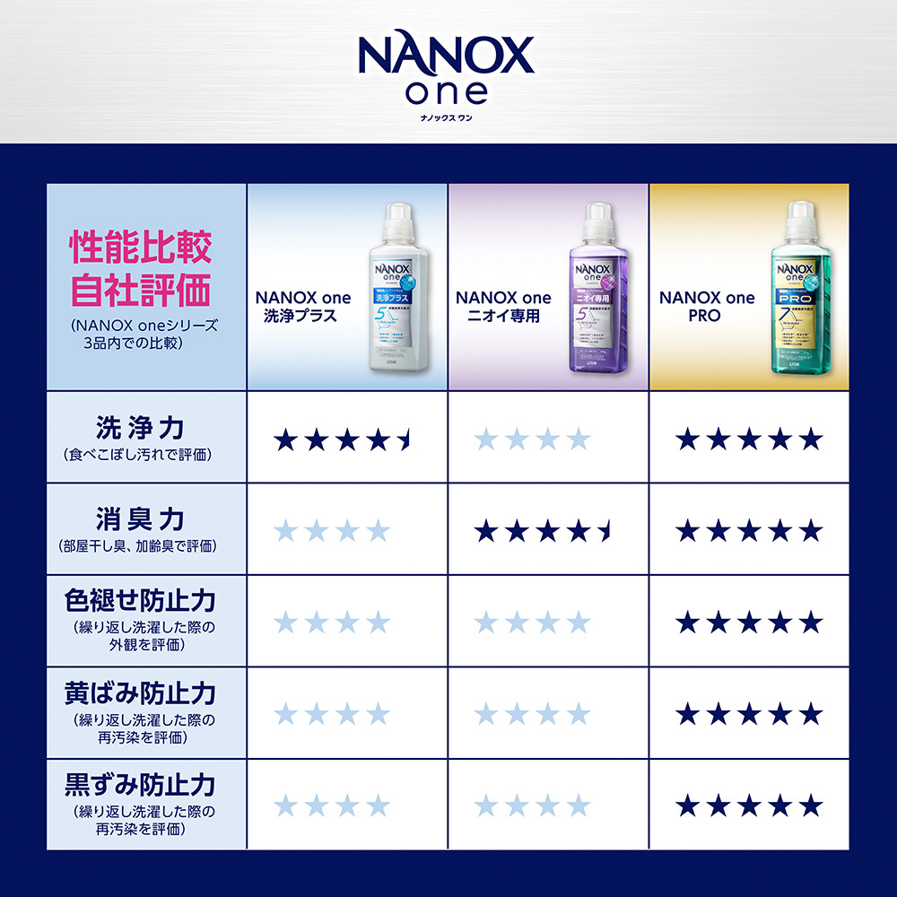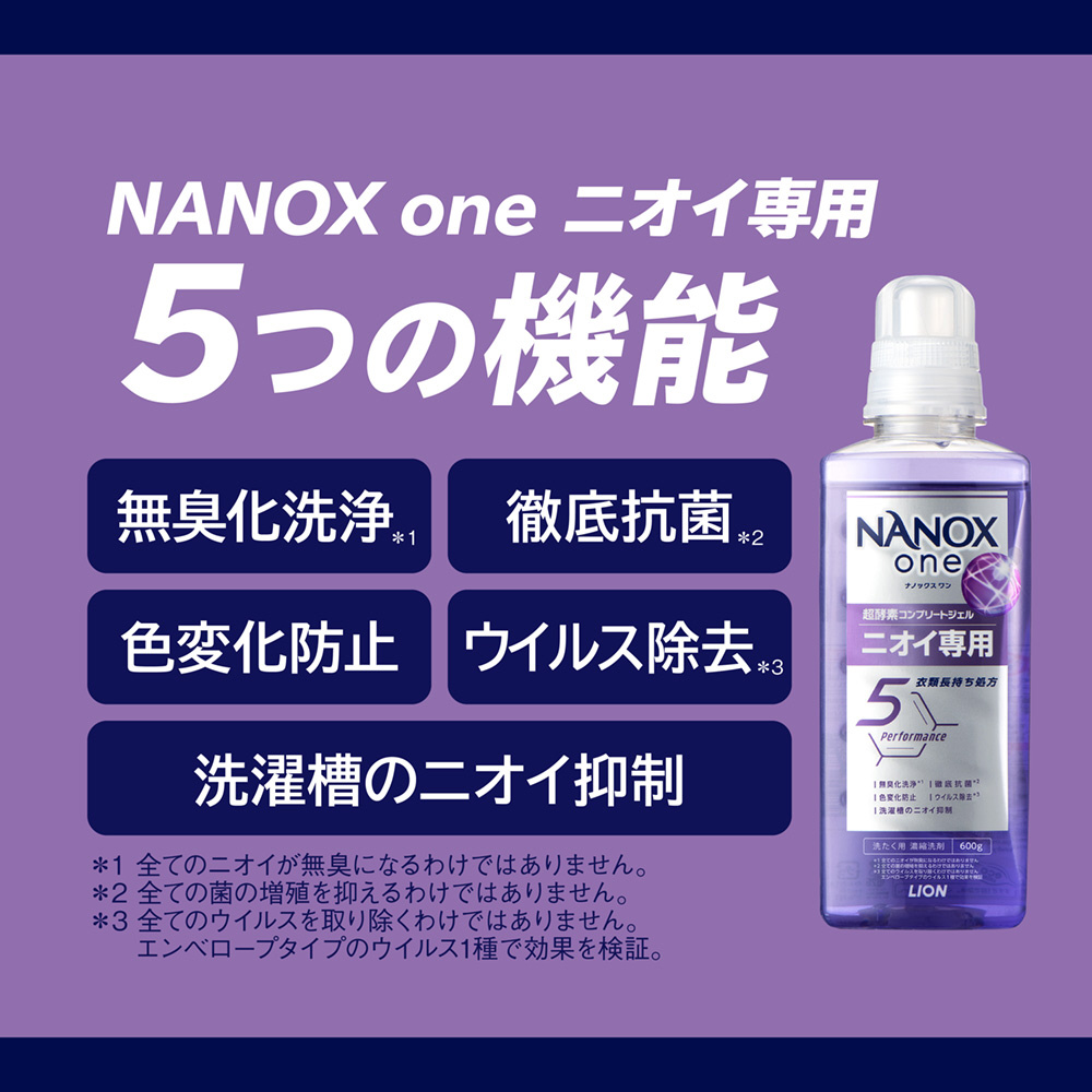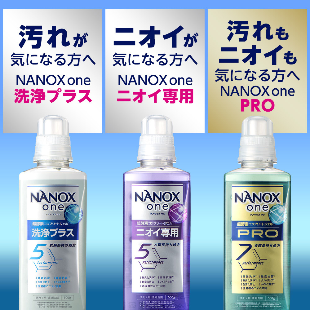 NANOX史上初の新酵素配合で部屋干し臭、汗臭、タオルの雑菌臭、枕カバーの加齢臭まで無臭化洗浄!それだけでなく、黄ばみ・黒ずみ・くすみの発生を抑制し、色あせも防ぐ、衣類長持ち処方。