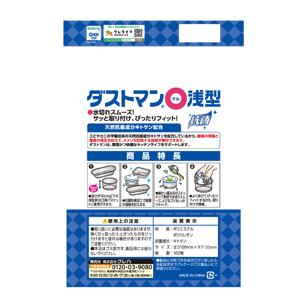 天然抗菌成分配合!浅型排水口用の水切りゴミ袋です。
