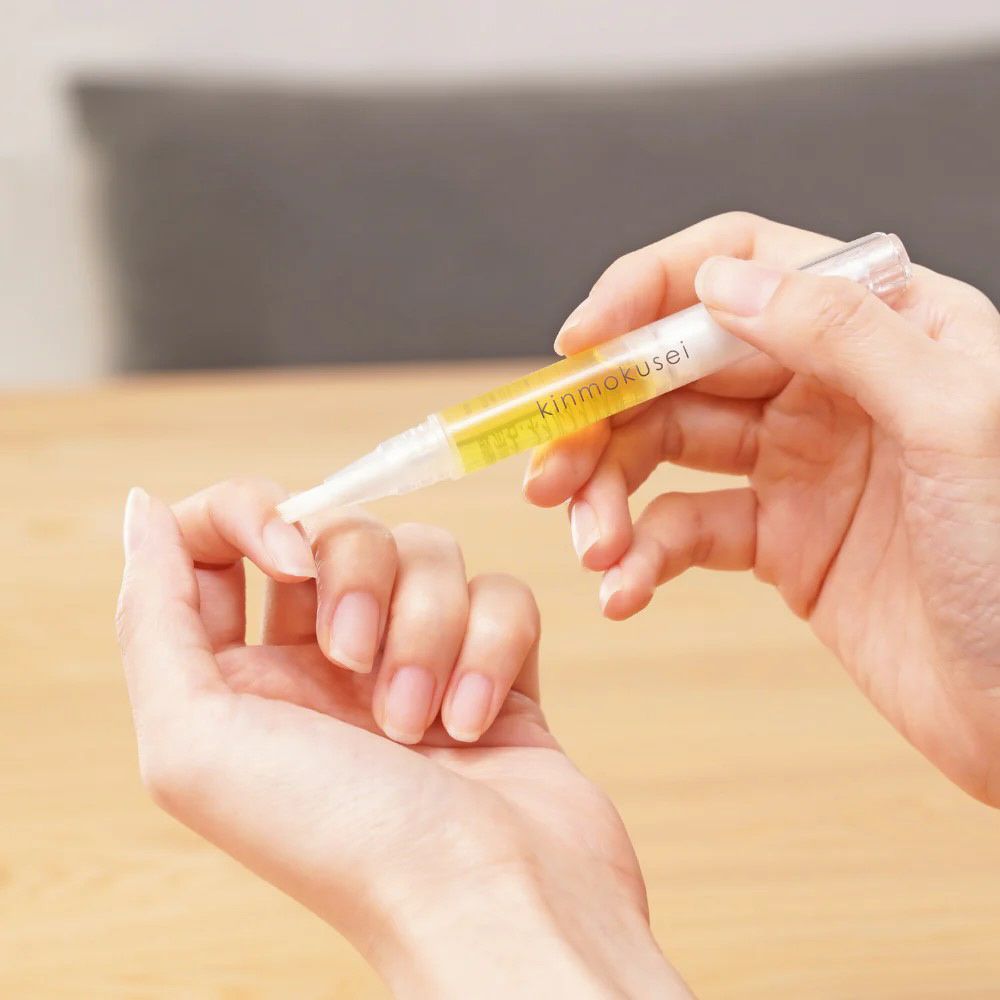 2. オイルが筆に浸み出たら爪、甘皮周り、指先にオイルを塗布します。