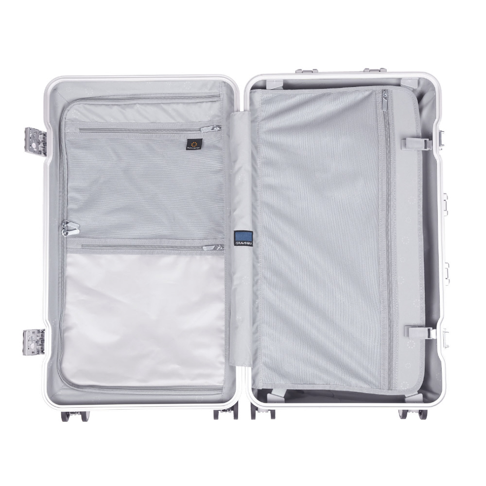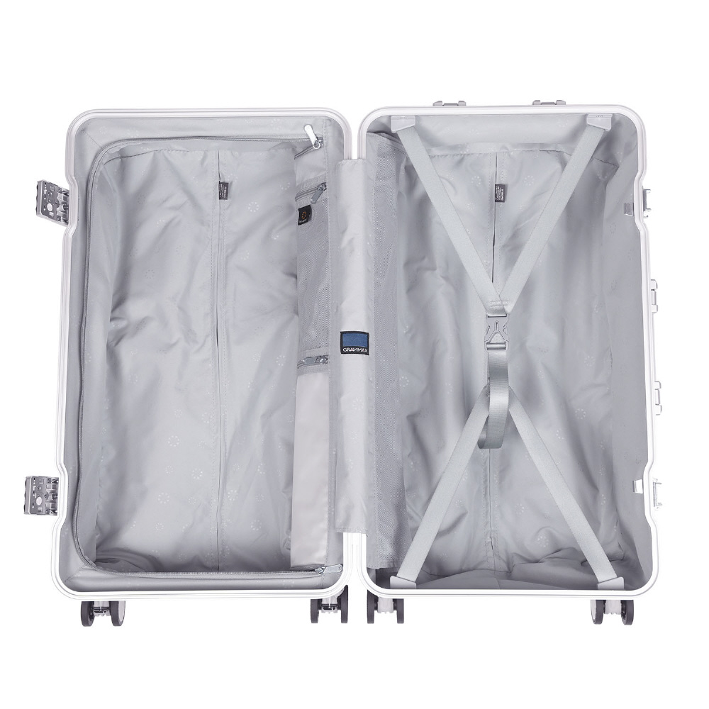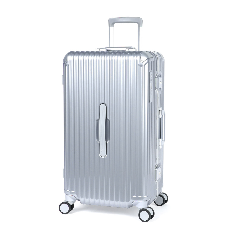 スーツケース フレームタイプ 宿泊目安: 7〜9日間 70L 前輪ストッパー 抗菌・抗ウィルス 内装防水ポケット GRANMAX クロームシルバー GM-056-25