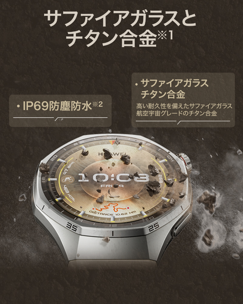 HUAWEIWATCHGT6Proは、高強度のサファイアガラスと航空宇宙グレードのチタン合金で作られたスマートウォッチです。