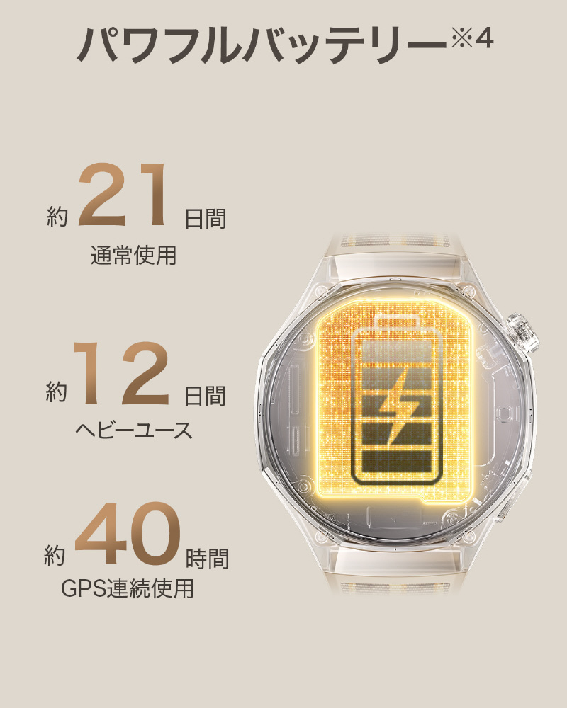 圧倒的な持久力を誇る、約21日間使えるパワフルバッテリー。