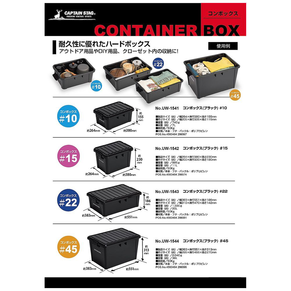 耐久性に優れたハードボックス。アウトドア用品やDIY用品、クローゼット内の収納に!