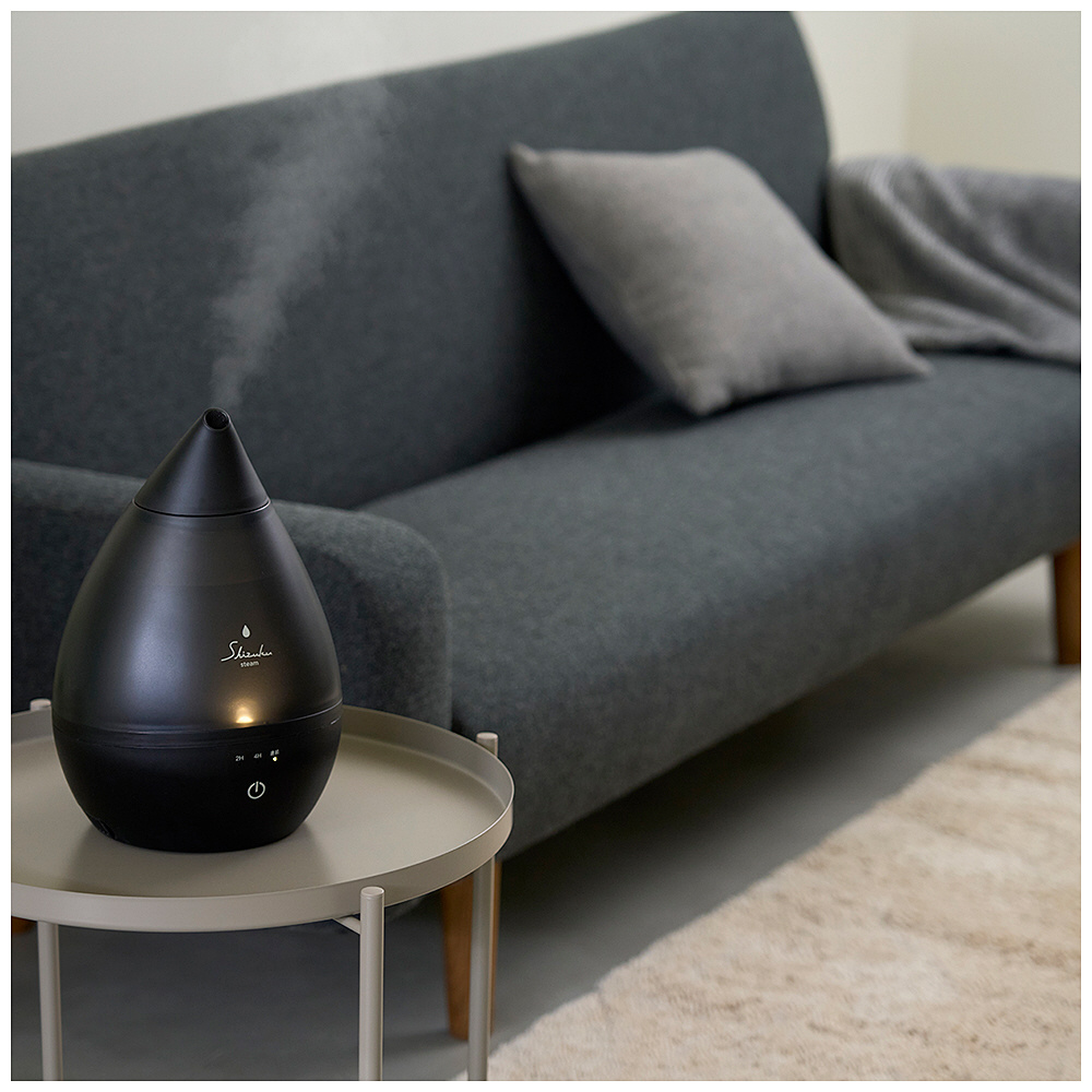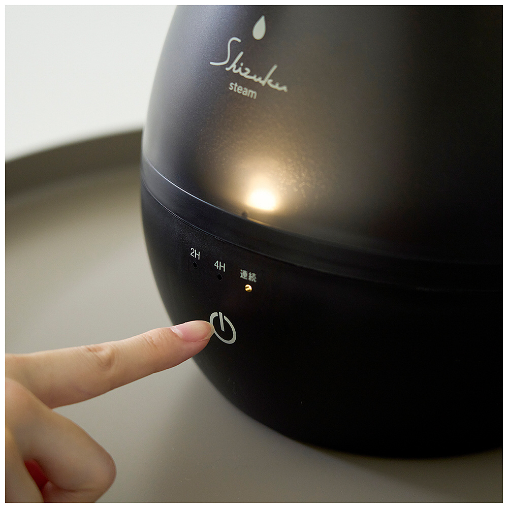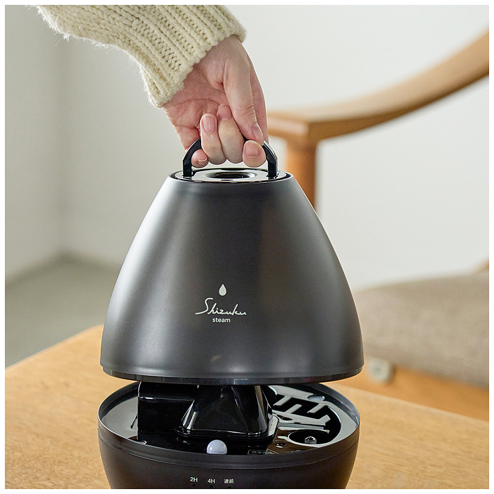 ■スチーム蒸気で加湿するSHIZUKU タンクの水をヒーターで加熱して、気化させた蒸気をファンで送りだす加湿器。 スチーム式は、加湿能力が高く短時間でお部屋を潤します。