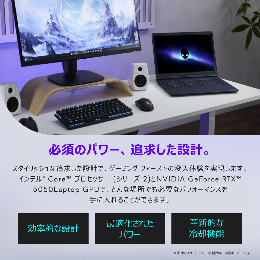 インテル Core プロセッサー (シリーズ 2)とNVIDIA GeForce RTX 5050のLaptop GPU搭載で、どんな場所でも必要なパフォーマンスを手に入れることができます。