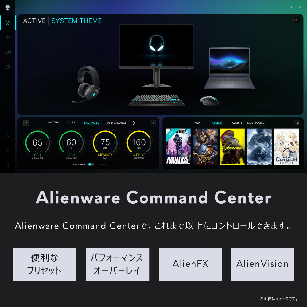 夢中になれる、優れたパフォーマンス。インテル Core プロセッサー (シリーズ 2)を搭載し、最適化されたパフォーマンスを発揮するスタイリッシュなデザインのゲーミング パソコン。WQXGA 120Hz 300ニットのディスプレイに、アルマイト処理されたアルミニウム製カバーを採用。