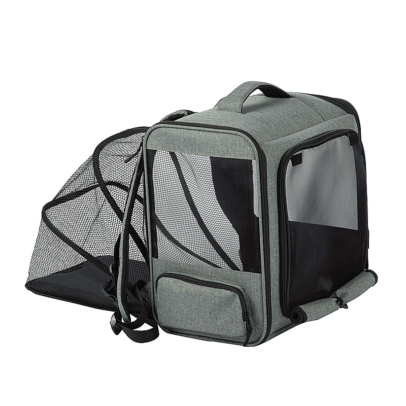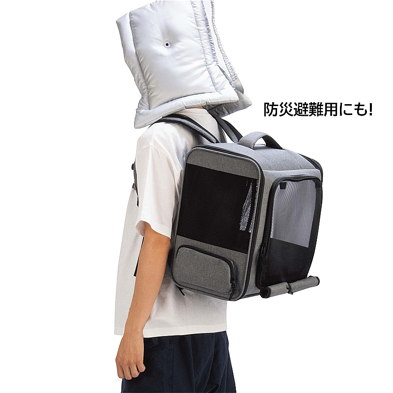 ペット用キャリーバッグ。ペットのお出かけに。防災避難用にも使える。便利な拡張型。広がるリュックバッグ、通気性抜群。サイドと正面から出入り可能。ロールアップでメッシュに!多機能ポケット付き。飛び出し防具金具付き。底板付き。