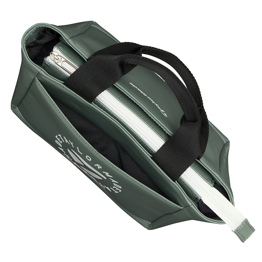 シンプルな正統派のデザインに、大きく配されたカジュアルテイストのサークルロゴが印象的なラウンドトート。