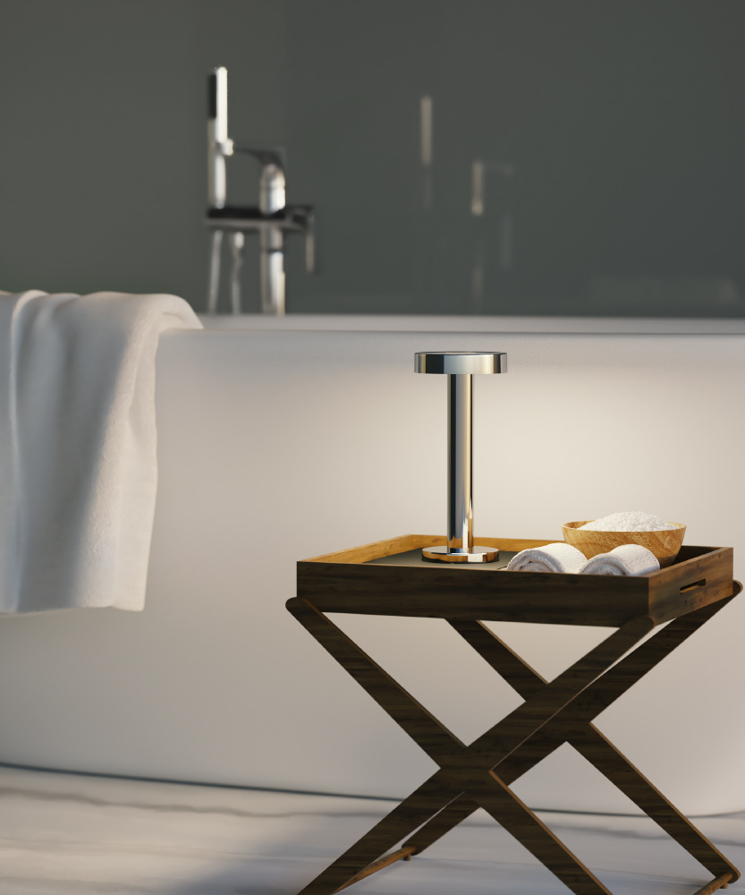 洗練を纏う、コードレスの静かな輝き。「BORO(ボロ)」は高い防塵・防水性能を備えたコードレス充電式テーブルランプ。コンパクトで上質なアルミボディは、あらゆる空間に自然に溶け込み、落ち着いた存在感を放ちます。