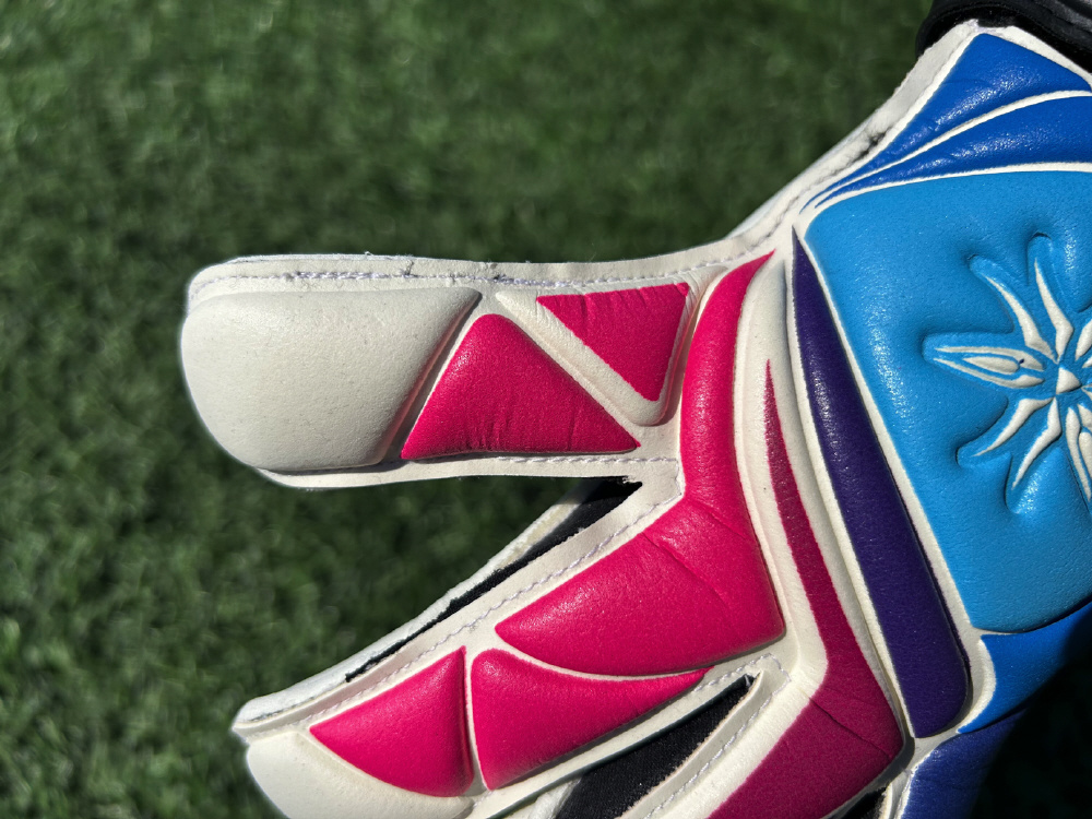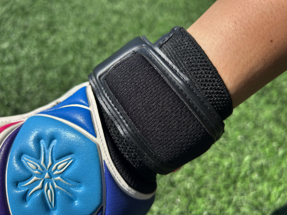 キーパーグローブの脱着時にパームを傷つけないためのTタブ。