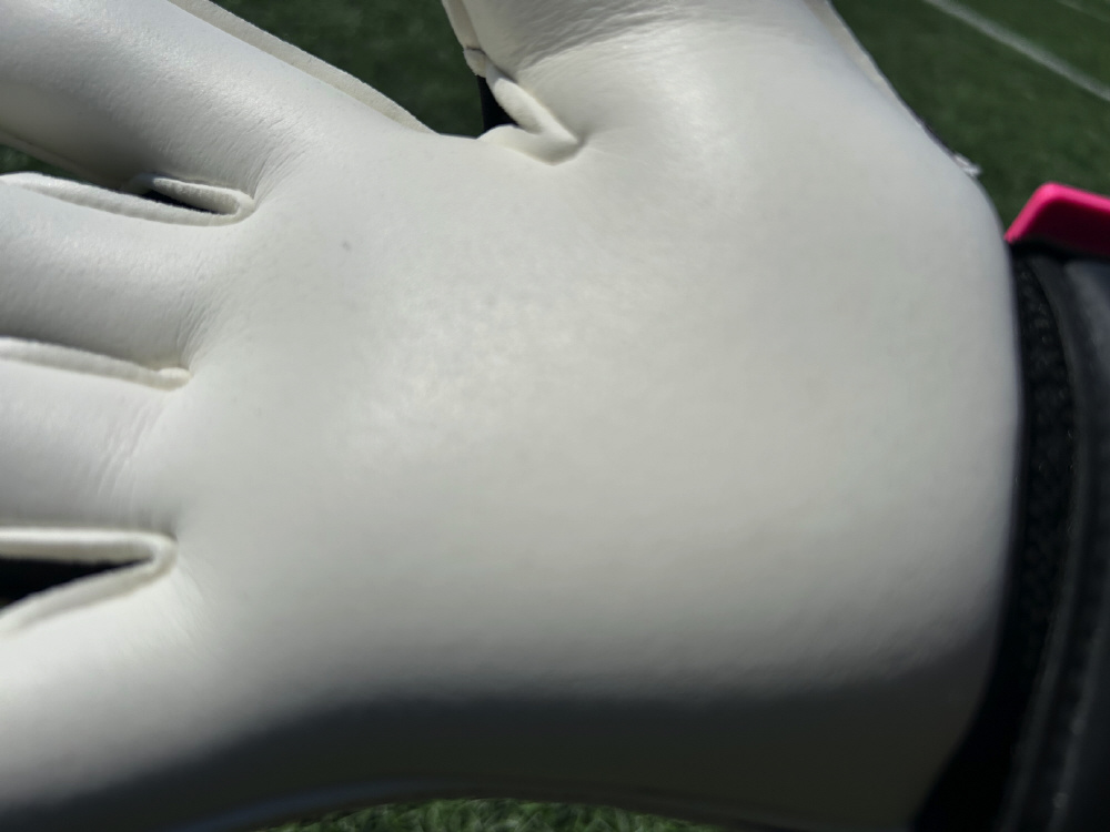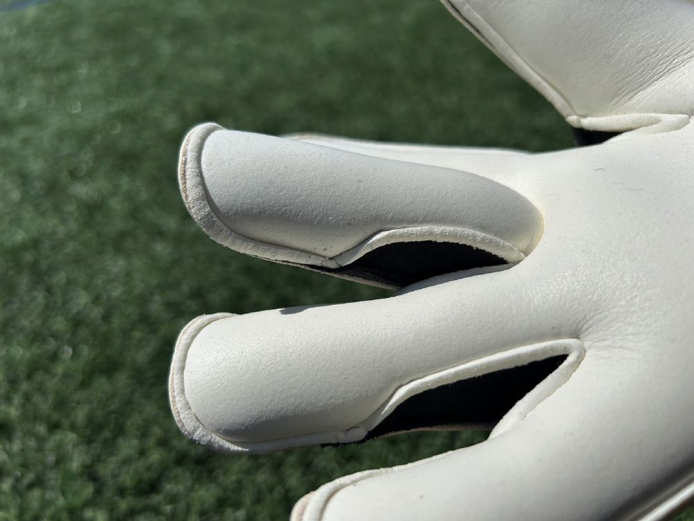 キーパーグローブの脱着時にパームを傷つけないためのTタブ。