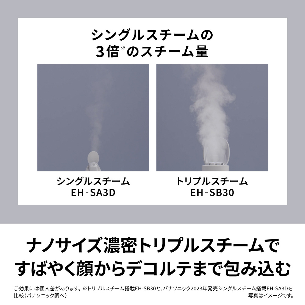 ※1、トリプルスチーム搭載EH-SB30と、当社2023年発売シングルスチーム搭載EH-SA3Dを比較 (当社調べ)