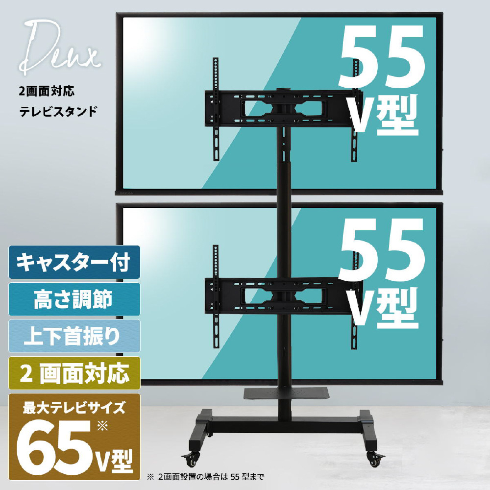 ディスプレイを上下2面、両面で設置できる本体耐荷重60kgのテレビスタンド(ディスプレイ1台のみの取付けは32〜65型ま