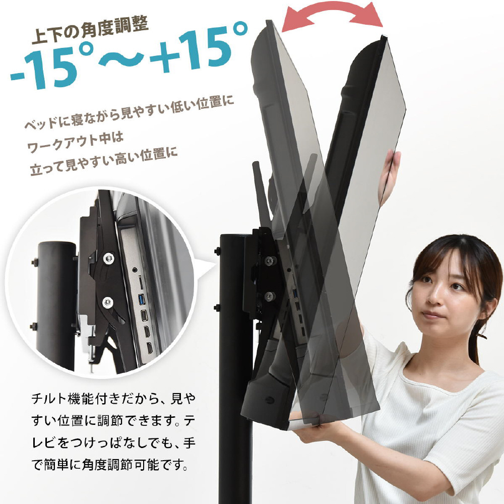 テレビを好きな場所でどこでも見やすい位置へ。お部屋間の移動やお掃除もラクラク簡単。