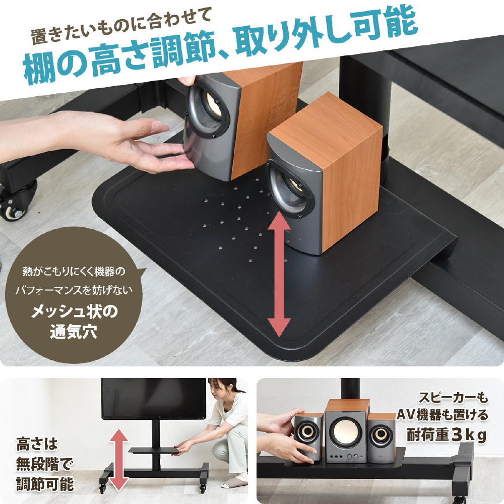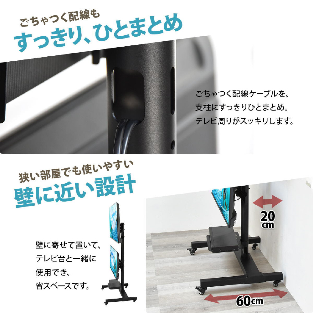 ■移動もらくらく、キャスター付きテレビスタンド