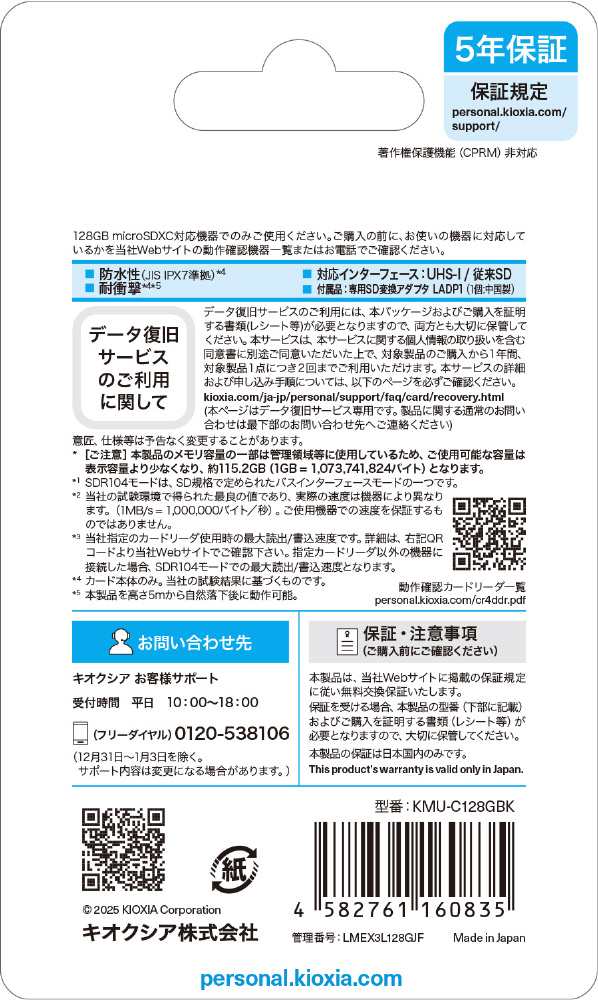 【復旧サービス付き】SDXC microSDカード アクションカメラ・スマートフォン・ゲーム機におすすめの高速タイプ EXCERIA(エクセリア) KMU-C128GBK [Class10 /128GB]