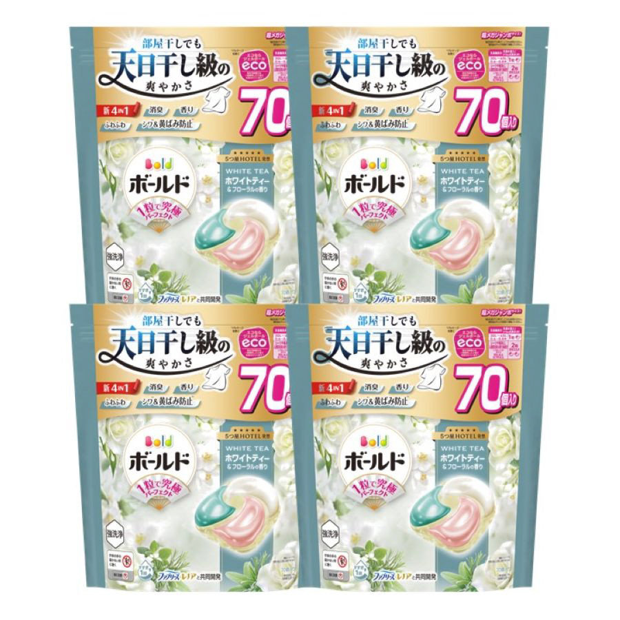 【ケース販売】ボールドジェルボール4D心弾けるホワイトティー&フローラルの香り 詰替超メガジャンボサイズ 70個入×4個