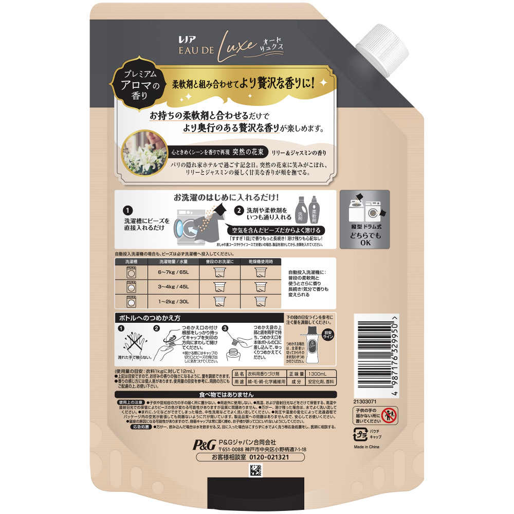 【ケース販売】レノアオードリュクスアロマジュエル イノセントリリー&ジャスミンの香り 詰替用超特大サイズ 1300ml×6個