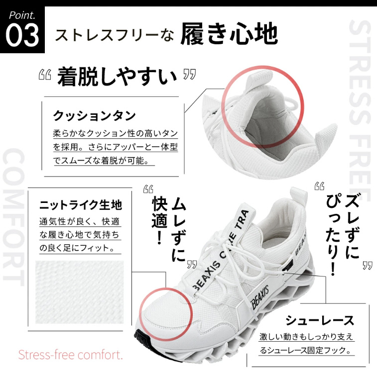 蹴りだしラクラクな屈曲性あり!抜群の弾力性で衝撃吸収。快適なフィット性で疲れ知らず。