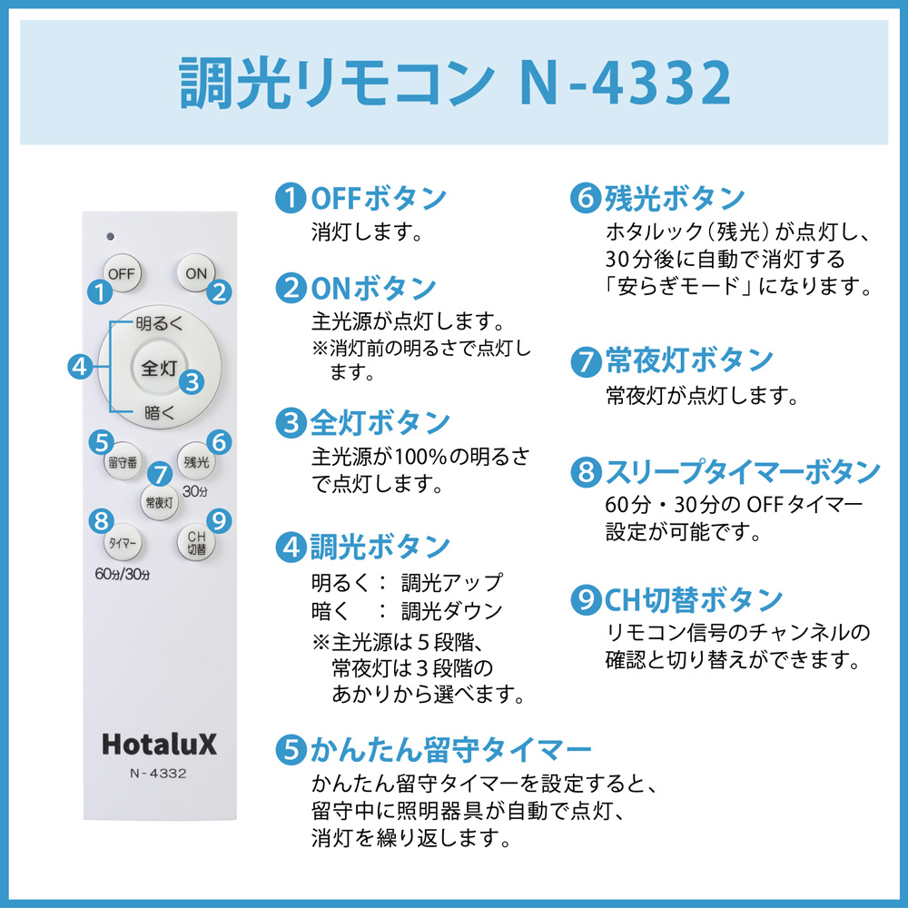 やすらぎモード:残光延長機能付き