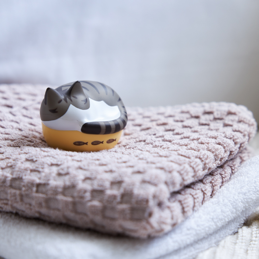 お気に入りの寝床から少しあふれるようなもっちりフォルムを存分にかわいがってください。