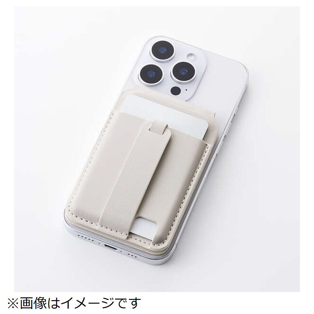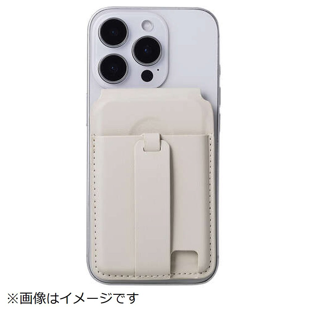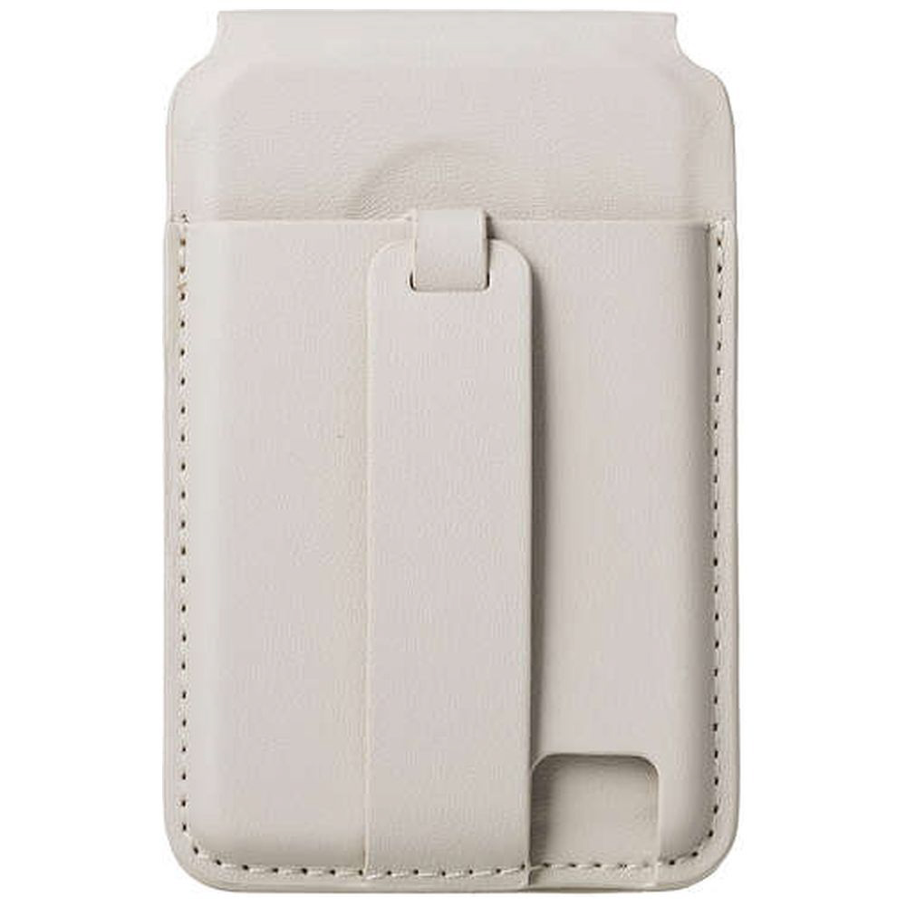 MagSafe カードケース スタンド iPhone用 磁気防止シート付 3枚収納 マット素材 バンド付 MAGKEEP ベージュ AMS-MAGCSBBG