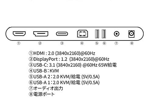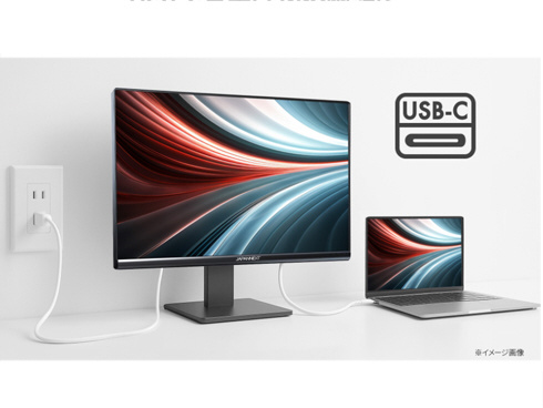 ■インターフェイスはHDMI2.0 x1 (60Hz)、DisplayPort1.2 x1 (60Hz)とUSB-C x1 (60Hz/最大65W給電)を装備し、様々な機器との接続が可能です。USB-C(最大65W給電)は、対応のPCであればUSB-Cケーブル1本でモニターへの映像出力とノートPCへの給電が可能。ケーブル1本でスッキリ接続出来るだけでなく、テレワーク、出社併用の場合などノートPCのACアダプターを持ち運ぶ必要が無くなります。