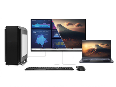 ■KVM機能に対応。モニターに接続したキーボード、マウスをデスクトップPCやUSB-C接続のノートPCで入力を切り替えた際にもそのまま使用可能です。