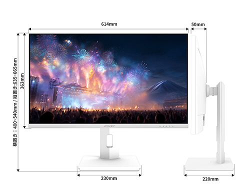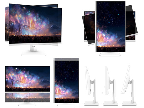 ■本体カラーにホワイトを採用。モニターベゼルやスタンドも白となっており、爽やかでおしゃれな空間を演出したい場合や、デバイスを白で統一したい場合に最適です。さらに、付属の電源アダプター、ケーブル類にもホワイトカラーを採用。全体が白基調に統一された部屋や医療機関などでの使用にも最適です。