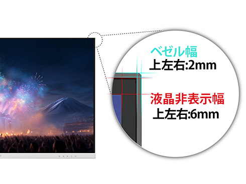 ■あらゆる角度から見ても色やコントラストの変化がおきにくいIPSパネルを搭載し、広視野角上下左右178°を実現します。最大輝度400cd/m2、sRGB:100%の広色域に対応した液晶パネルはHDR400相当の性能を持ち、コンテンツを色鮮やかに映し出します。